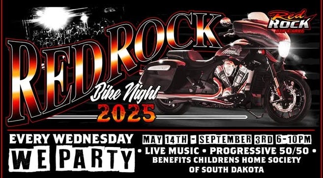 Red Rock Bar & Grill continues its summer Bike Night series with live music by the Mean Streak Band. Attendees can enter a raffle for a chance to win a 2025 Indian Chieftain PowerPlus motorcycle. Tickets are limited, and participants do not need to be present to win.