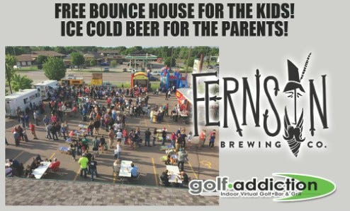 Golf Addiction welcomes families for Food Truck Tuesday featuring six local vendors and live music from Elisabeth Hunstad. The event includes a bounce house for kids, sponsored by Bounce Around Inflatables. It's an evening of food, music, and fun for all ages.