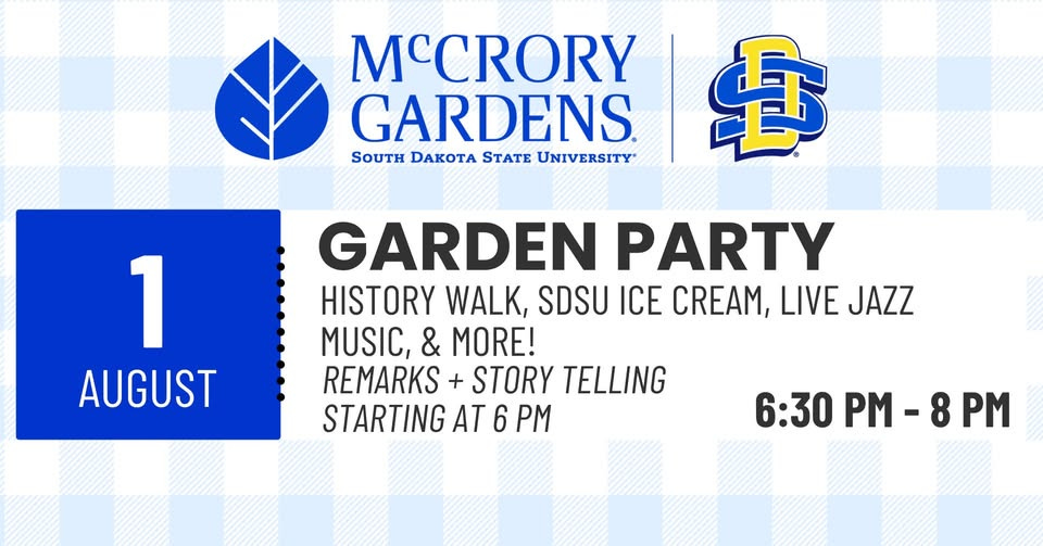 McCrory Gardens in Brookings hosts its 37th Garden Party with live jazz, SDSU ice cream, and a guided history walk. The event is open to the public and offers a relaxing evening surrounded by nature. Visitors can enjoy the gardens while taking in music and refreshments.