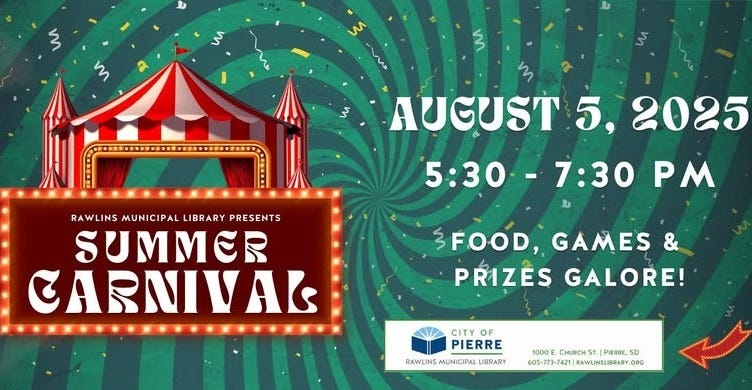 Rawlins Library presents a Summer Carnival evening with games, food, and surprises. Guests can enjoy pizza by the slice and a variety of festive activities. It’s a chance to relax and have fun with friends and family in a casual outdoor setting.