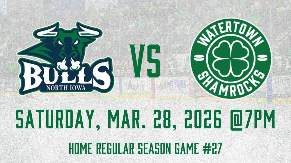 St. Patrick’s Day may be over, but the day’s not over for the Watertown Shamrocks. The puck drops at 7 p.m. as they take on the North Iowa Bulls in what’s sure to be an exciting and raucous game.