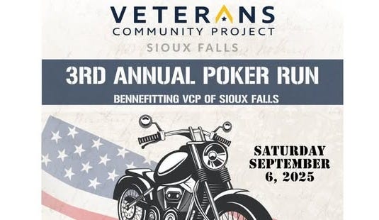 The third annual VCP Poker Run invites riders and supporters to come together for a day of community and cause. Start your journey at VCP Village and finish strong at Red Rock Bar, where food, live music, and raffle prizes await. This event helps support the Veterans Community Project of Sioux Falls, bringing people together for a mission that matters.