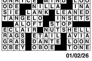 Crossword, Sudoku answers: Dec. 26-Jan. 1